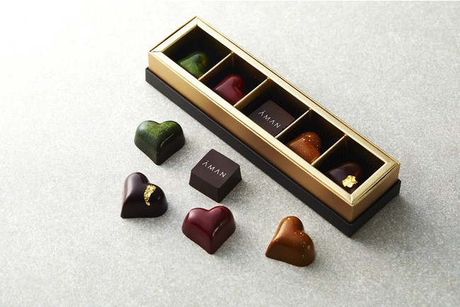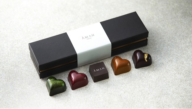 アマン東京 (東京・大手町、総支配人八木朋子)では、10月にオープンいたしました「ラ・パティスリー by アマン東京」と、アマン東京オンラインショップにて、「アマン東京 オリジナル バレンタインチョコレート 2022」(箱入り5個セット 3,240円/税込み)を2022年1月30日(日)から2月14日(月)まで期間限定で販売いたします。
